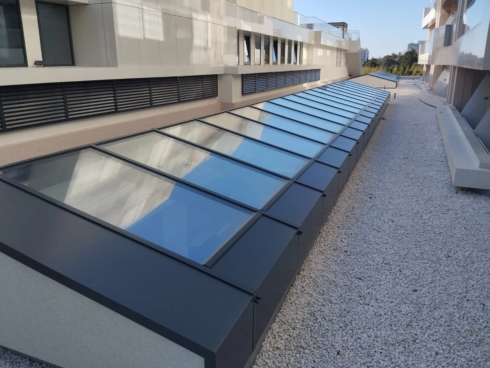Зенитные фонари из алюминиевого профиля отличаются модульной конструкцией, позволяющей создавать системы любой сложности и конфигурации в соответствии с архитектурными требованиями проекта.